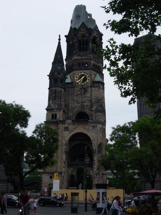 Toisen maailmansodan ilmapommituksessa tuhoutunut Keisari Vilhelmin muistokirkko.