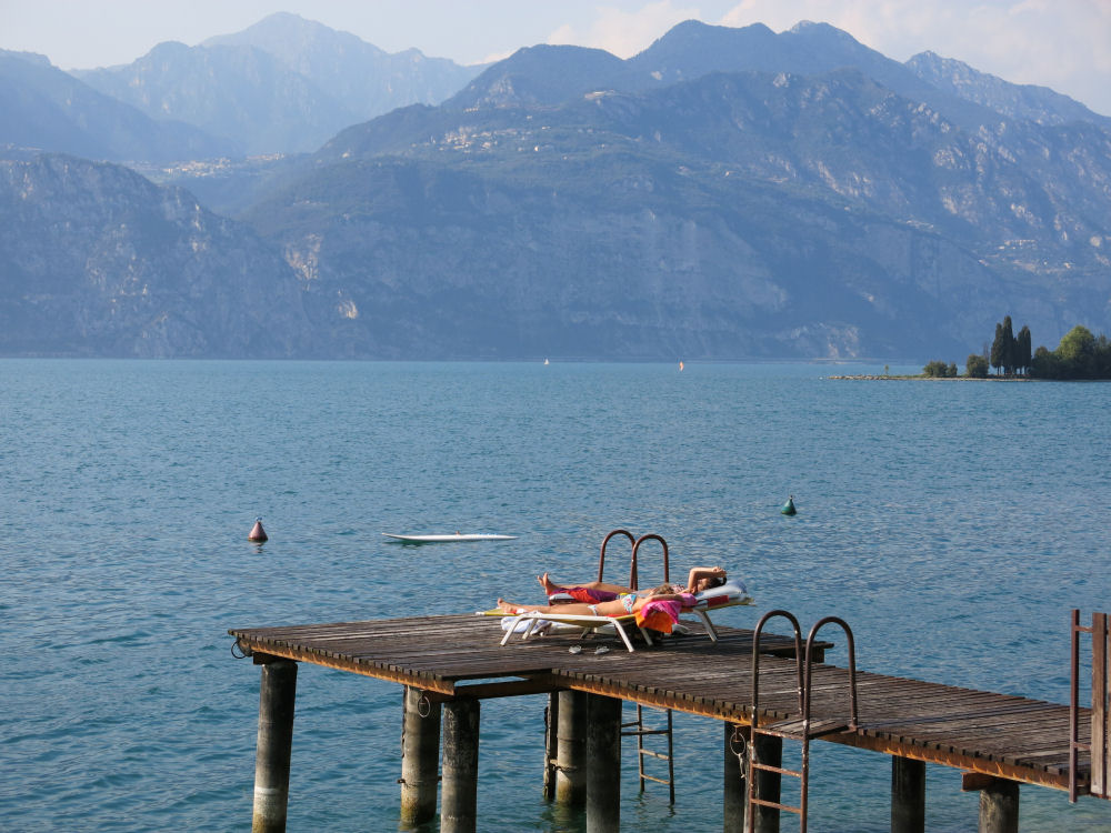 Auringonottopaikka laiturin päässä.