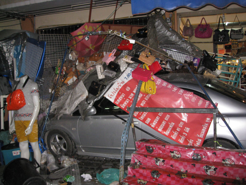 Sanoivat, että olisi ollut naiskuski, mahdollisesti humalassa. Tiettävästi henkilövahinkoja ei tullut. BANGKOK, THAIMAA