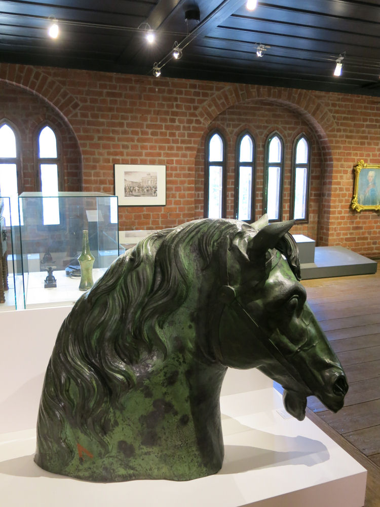 Märkisches Museum. Brandenburgin portin alkuperäisen nelivaljakkopatsaan yhden hevosen pää. Ainoa alkuperäisestä veistoksesta säilynyt osa. MITTE