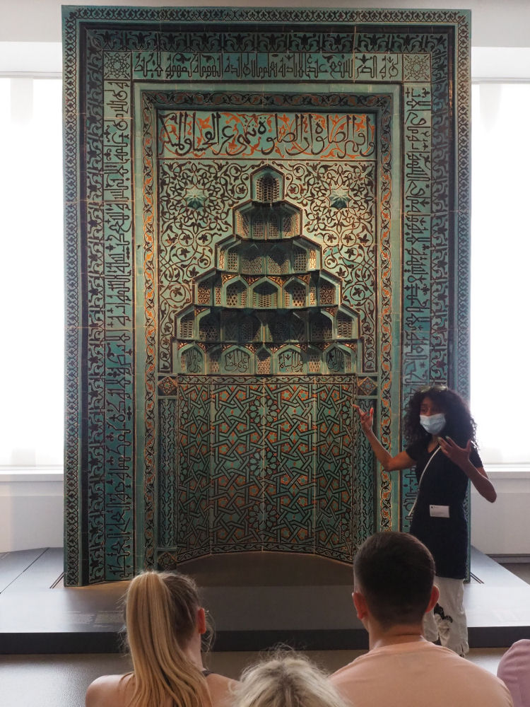 Pergamon-museo. Tuhatkunta vuotta vanha rukoussyvennys Beyhekimin moskeijasta Konyasta Vähä-Aasiasta (nykyisen Turkin alueelta). Tiesitkö, että rukoussyvennys näyttää muslimeille Mekan suunnan? En minäkään. MITTE