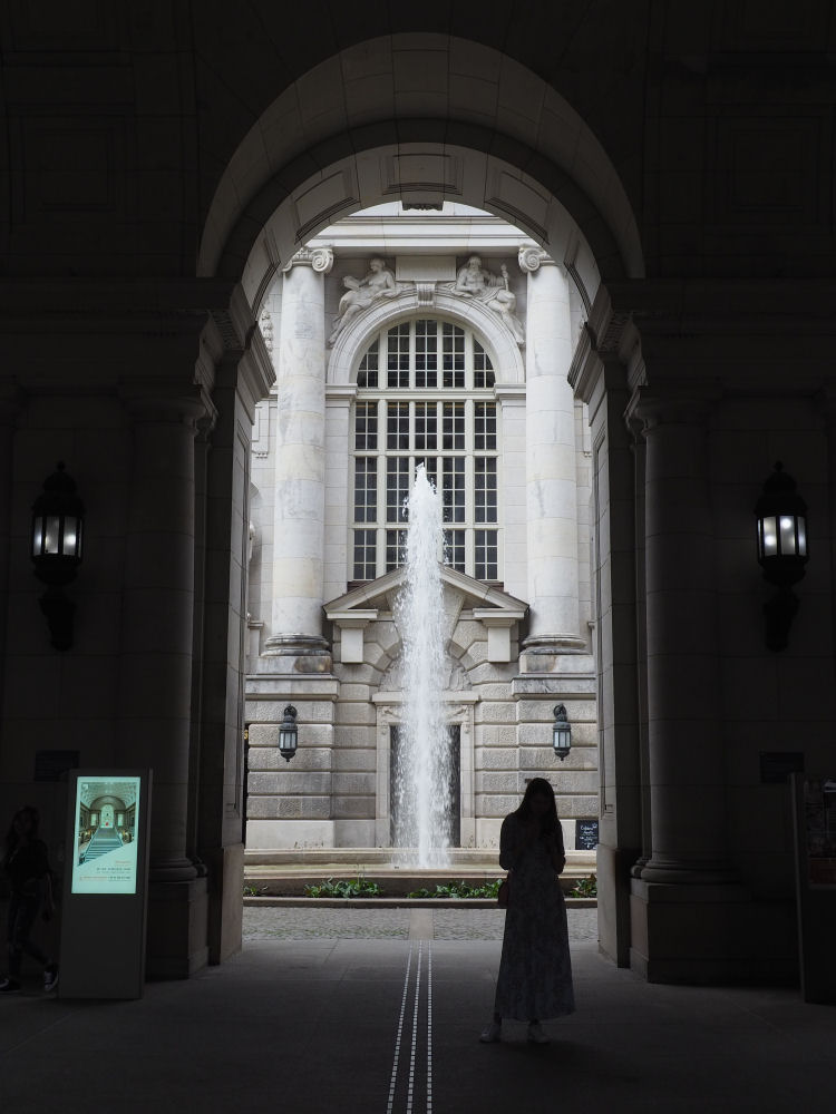 Kaupunginkirjasto. Portit oli niin kutsuvasti auki, että päätin vilkaista sisäpihalle. Suihkulähde sieltäkin löytyi. MITTE
