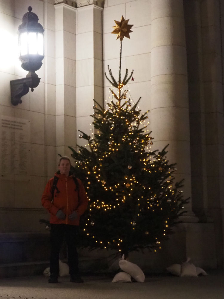 Pääkirjaston ovenpieleenkin oli tuotu iso joulukuusi.
