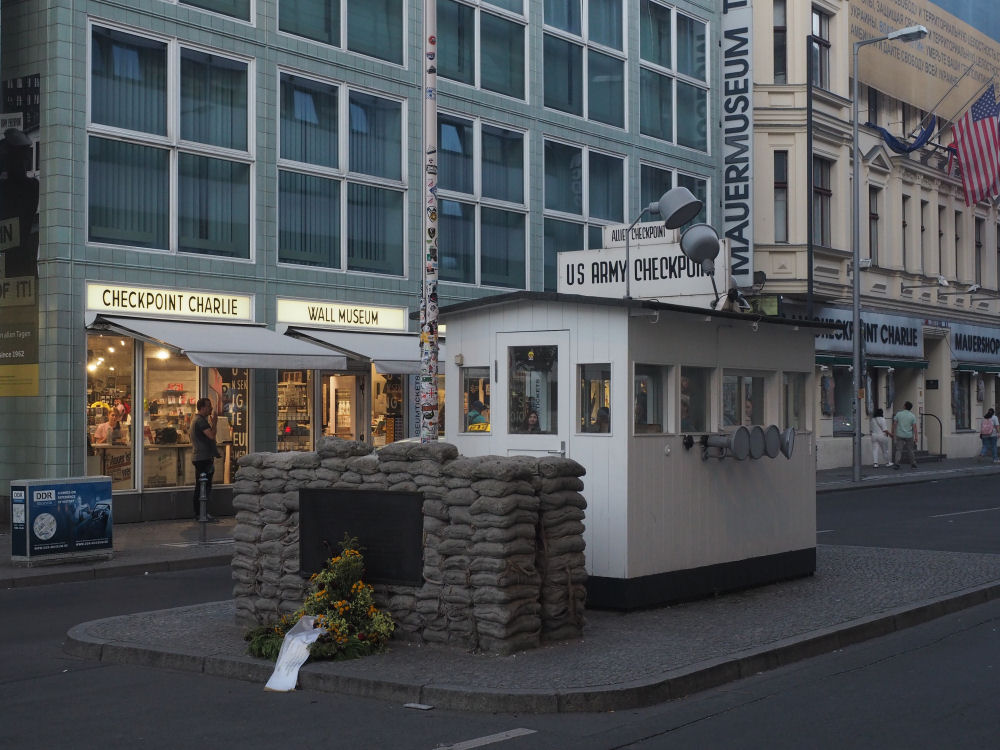Checkpoint Charlie. Vanha Länsi- ja Itä-Berliinin välinen rajanylityspaikka Friedrichstraßella. BERLIINI