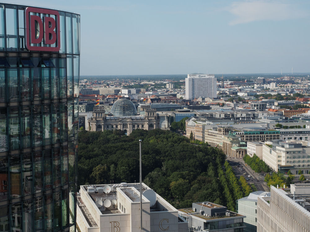 Panoramapunkt. Etualalla Bahntower. Taustalla mm. Valtiopäivätalo ja Brandenburgin portti. BERLIINI