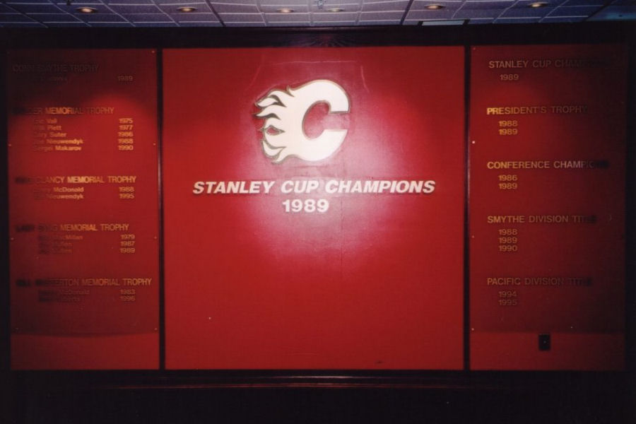 Pengrowth Saddledome. Calgary Flamesin saavutuksia. Vuoden 1989 Stanley Cup tietenkin suurimpana. CALGARY