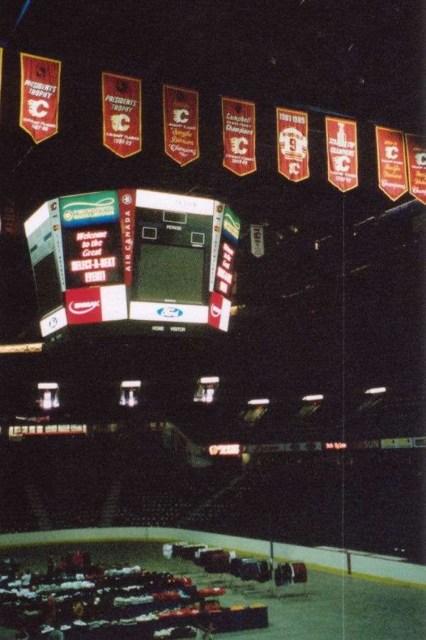 Pengrowth Saddledome. Kesäaikaan ei jääkiekkoa pelattu, mutta päästiin kuitenkin kierrokselle ympäri hallia. CALGARY