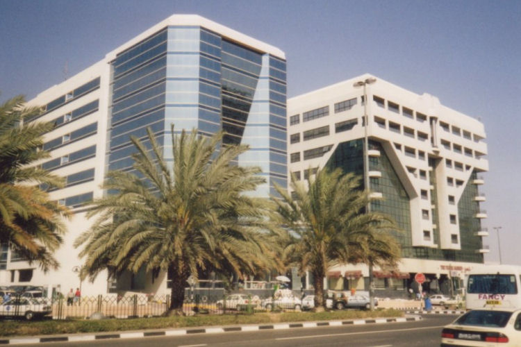 Tyypillistä katukuvaa. Peililasilla päällystettyjä taloja.