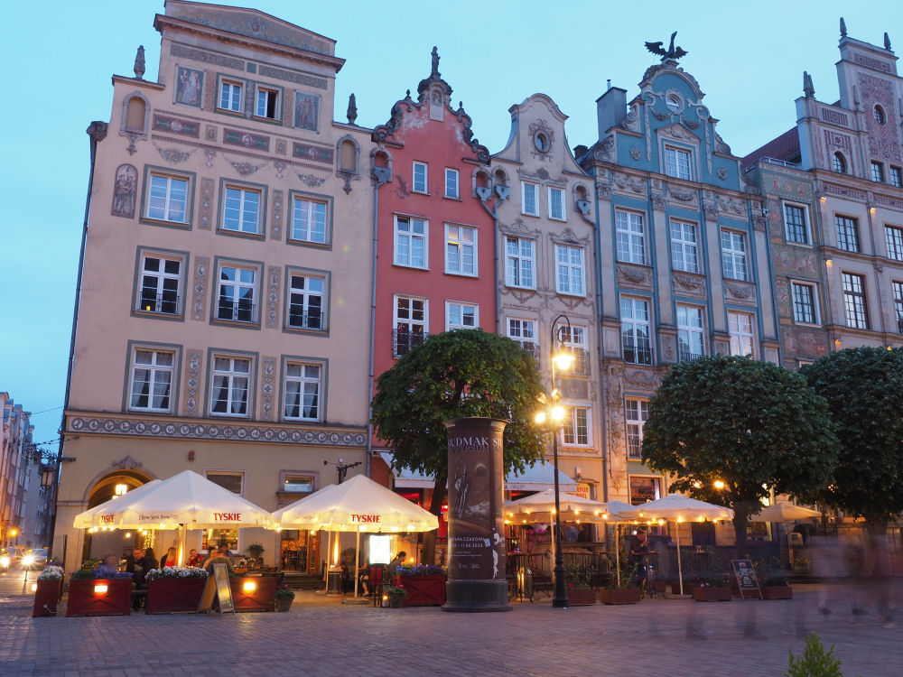 Pitkän torin talot on hienosti koristeltu. Valtaosa on sodan jälkeen rakennettu uudelleen, koska puna-armeija poltti kaiken mennessään kaupungin läpi keväällä 1945 kohti Berliiniä. GDAŃSK