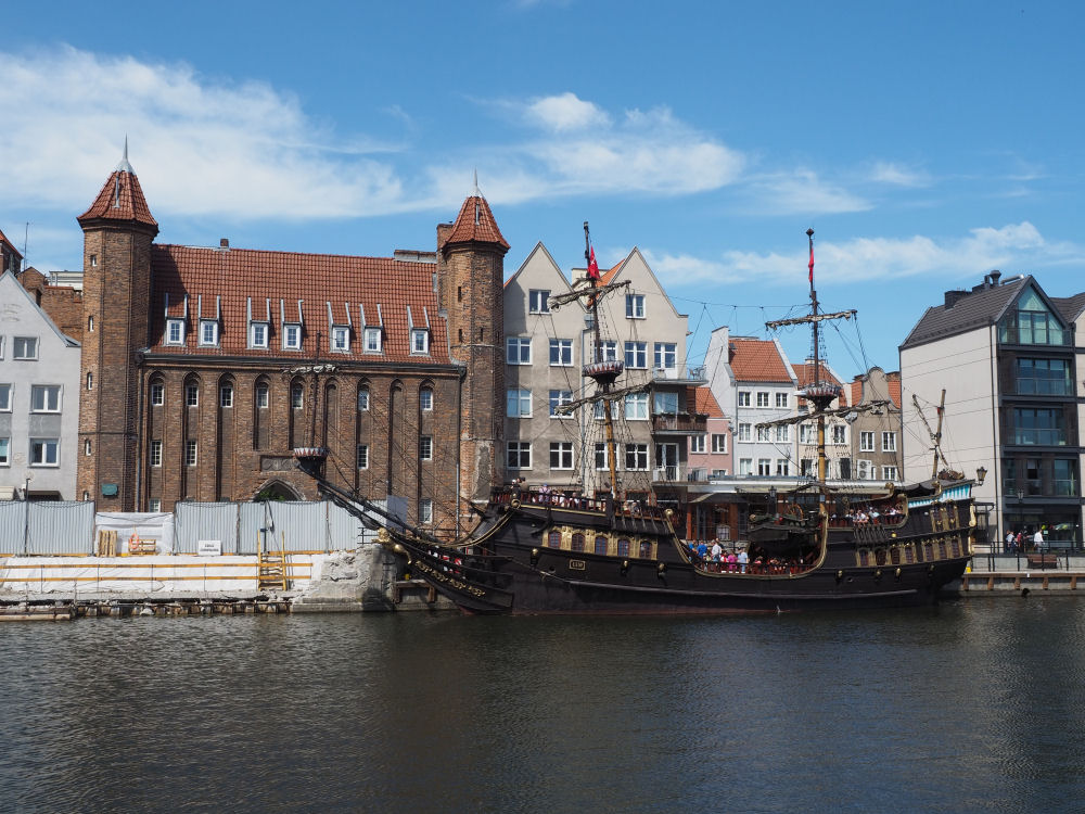 Gdańskin Musta Helmi. Black Pearl (tuttu Pirates of the Caribbean elokuvista) kuljetti turisteja kaupungin edustalla ja kanavissa. GDAŃSK