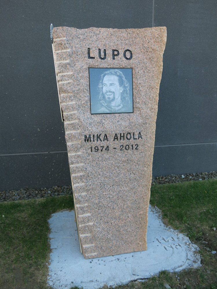 Koulukaverin, endurokuljettaja Mika Aholan muistopatsas Pullerilla Elenia Areenan edessä.