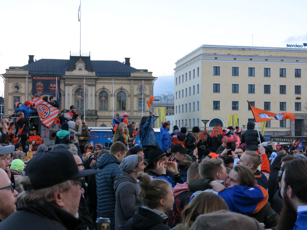 Tuhansia ihmisiä saapui katsomaan ottelua Hämeenlinnan torille tuodulta isolta näytöltä.