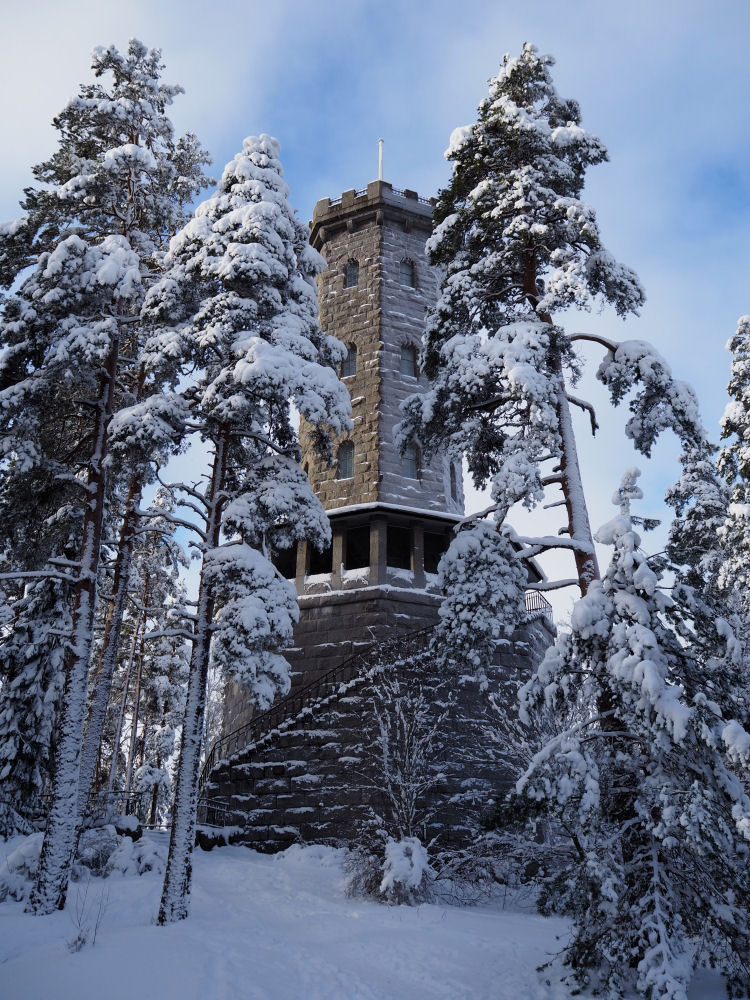 Aulangon näkötorni kuulaassa pakkassäässä.