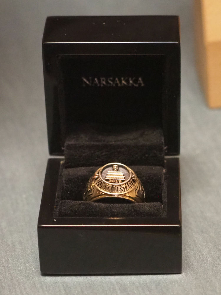 Museo Skogster - Hämeenlinnan Kaupunginmuseo. HPK:n miesten jääkiekkojoukkueen mestaruussormus vuodelta 2019. Suomenmestaruus oli HPK:n edustusjoukkueelle historian toinen. Ensimmäinen on vuodelta 2006.