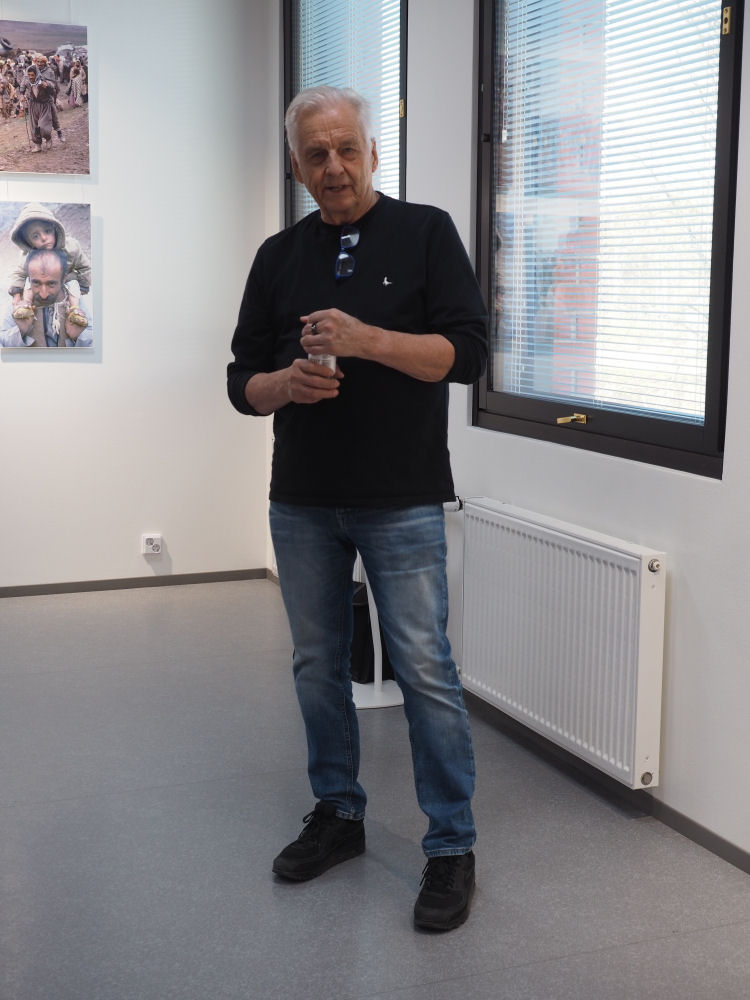 Sotakirjeenvaihtaja, toimittaja, kirjailija ja reissumies Rauli Virtanen kävi pääkirjastossa puhumassa maailman menosta valokuva- (Rauli Virtanen) ja taulunäyttelyn (Risto Ilmavirta) yhteydessä.