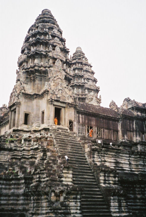 Sisemmän pylväskäytävän kulmatornille nousee jyrkähköt portaat.