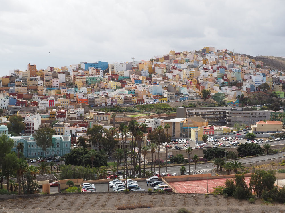 Las casas de colores. Värikkäitä taloja rinteessä. Kaupungin suuret korkeuserot ovat pakottaneet tällaiseen rakentamiseen. LAS PALMAS