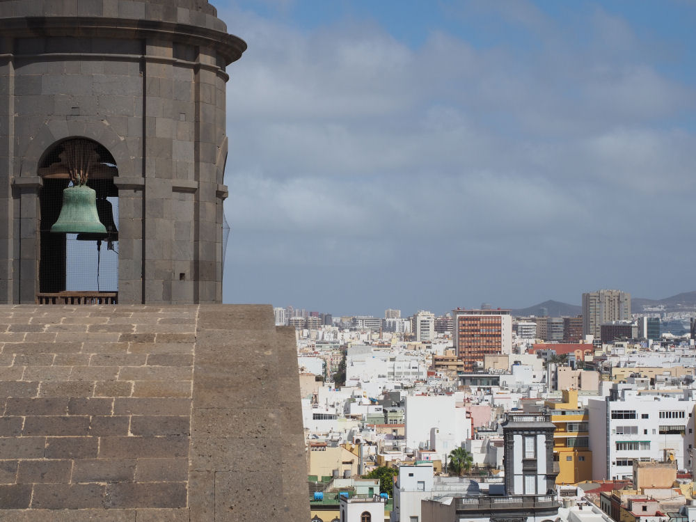 Santa Anan katedraali. Katedraalin tornista aukesi hyvät näkymät myös viime vuoden vuokratalolle (iso ruskea/oranssi talo, joka hallitsee kuvaa). LAS PALMAS