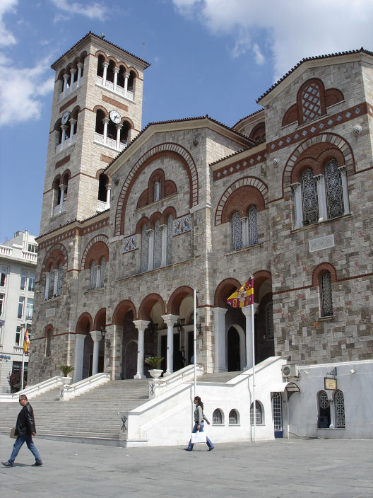 Suuri kirkko Piraeuksen sataman vieressä.