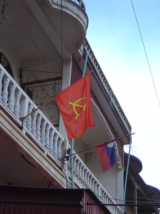 Ryssänliput liehui. Laoshan on ainakin nimellisesti kommunistinen maa.