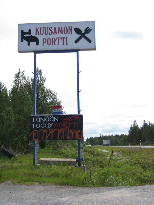 Kuusamon Portin thainkielinen teksti kiinnitti huomion ja paljastui, että paikkaa pitää hollantilais-thaimaalainen pariskunta. Thairuokaakin sai! KUUSAMO