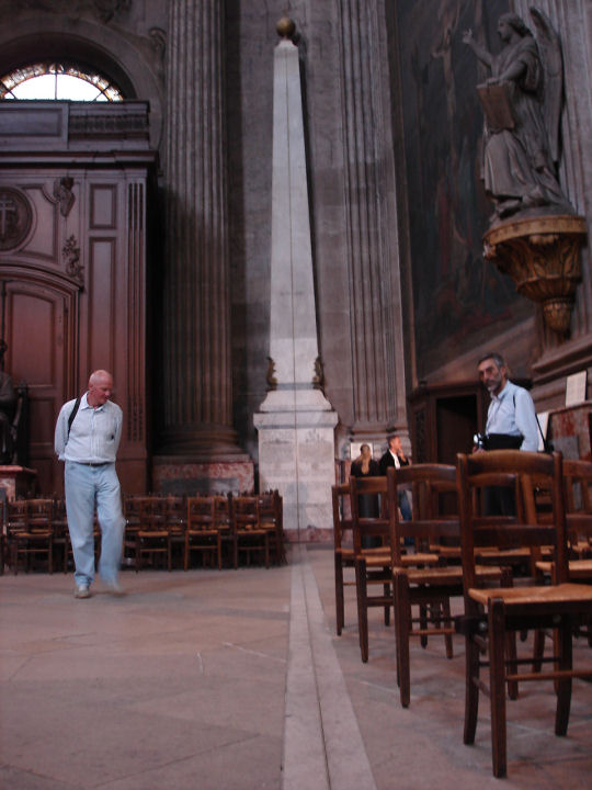 Saint Sulpicen katedraali. Mystinen "ruusulinja" halkoo katedraalin etelästä pohjoiseen. Da Vinci-koodissa kerrotaan yksi totuus linjan tarkoituksesta.