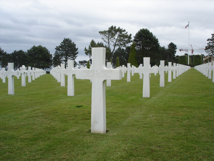 Normandian maihinnousussa kuolleiden amerikkalaisten sotilaiden hautausmaa. Colleville-sur-Mer, Ranska.