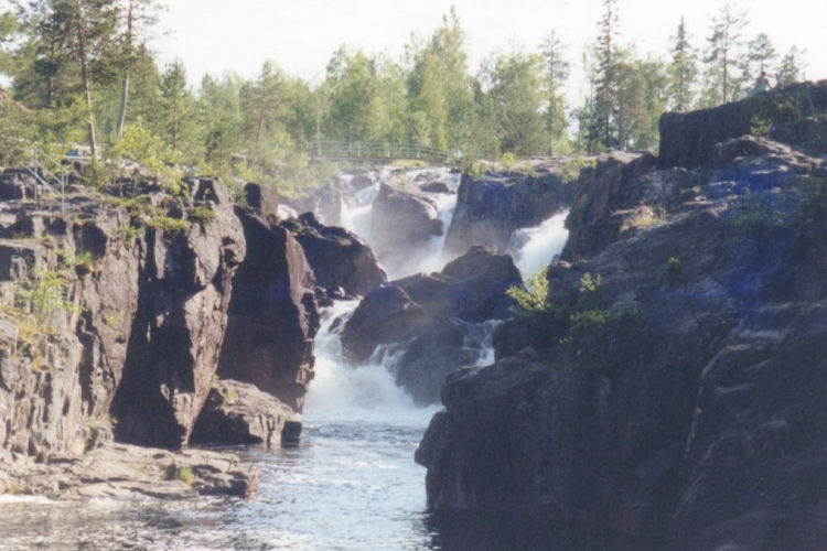 Kosken reuna-alueille muodostuu kesäisin pieniä putouksia.