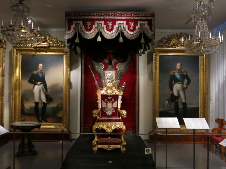 Aleksanteri I:tä esittävä maalaus valtaistuimen oikealla puolella.