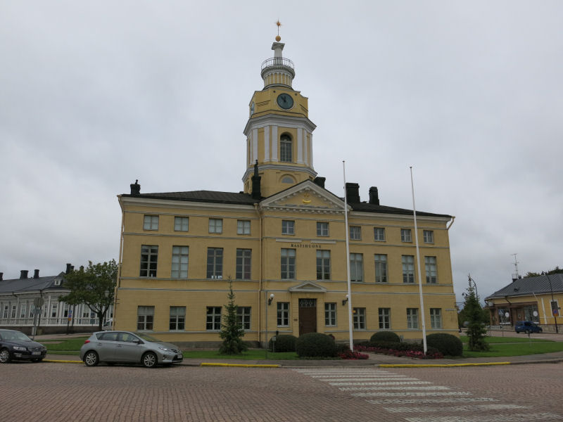 Raatihuone sijaitsee ympyräkaupungin (Haminan keskusta on kaavoitettu harvinaiseen ympyräkaavan muotoon) keskipisteessä. HAMINA 2014