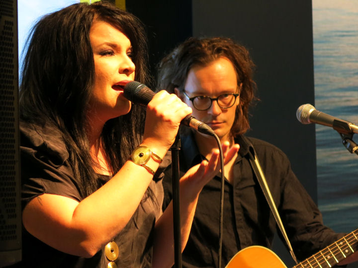 Hanna Pakarinen esiintymässä Matkamessuilla.