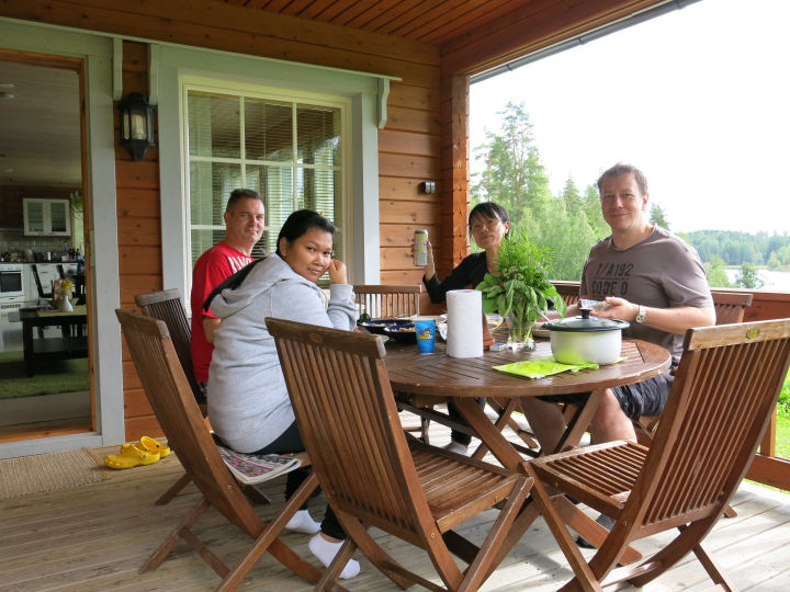 Salkolahden lomamökit. Tuulisessa säässä loistomajoituksessa Mayn, Ya-huin ja Juhan kanssa. ORIVESI 2016