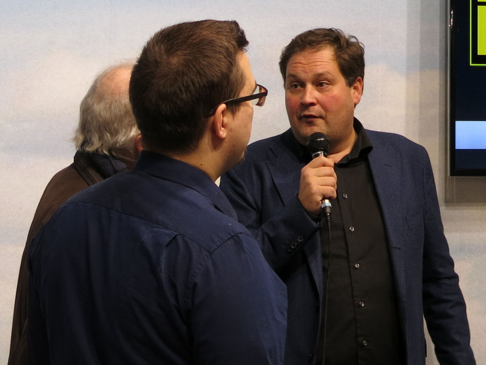 Jethro Rostedt vetää Onnenpyörä-peliä Matkamessuilla.
