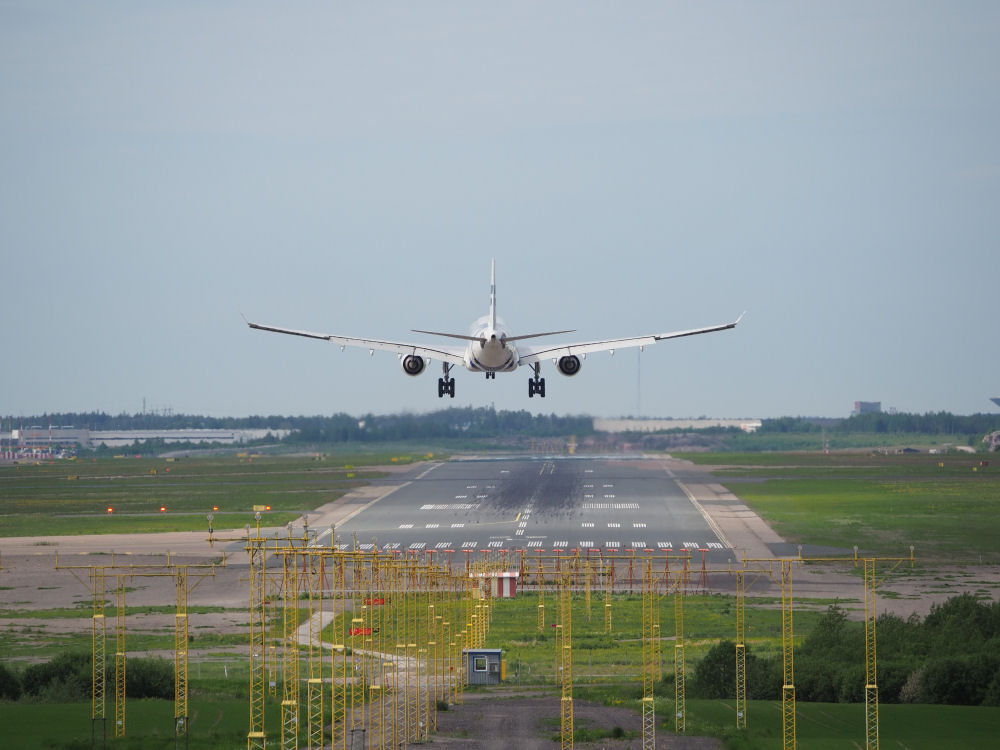 Finnairin Airbus A330 laskeutumassa Helsinki-Vantaan lentokentälle. Kuvattu Lemminkäisen kalliolta. TUUSULA 2022