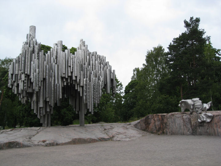 Sibelius-monumentti. Veistoksen abstraktius herätti aikanaan (v.1967) suurta kohua, ja taideyleisön vaatimuksesta siihen lisättiin Sibeliuksen kasvoreliefi, joka sijaitsee varsinaisen monumentin vieressä kallion päällä. HELSINKI 2010