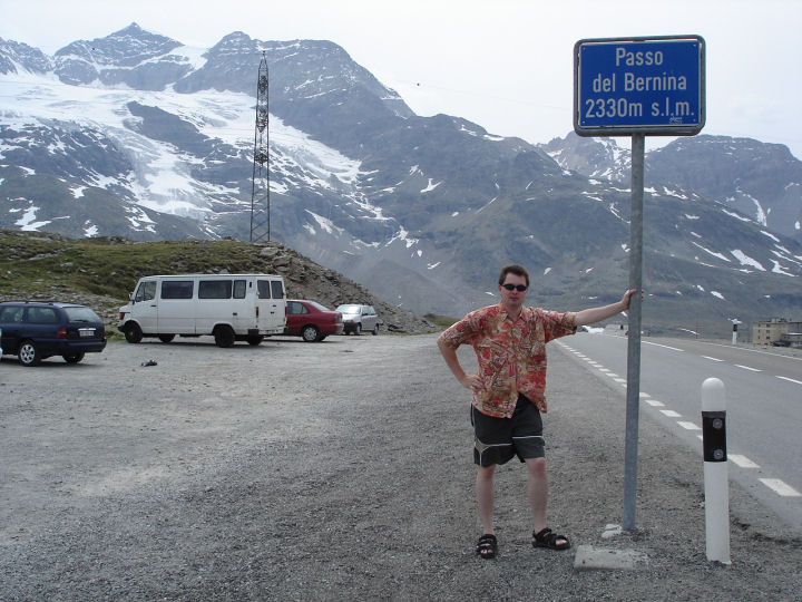 Passo del Bernina ja 2330 metriä. Mukavan viileätä.