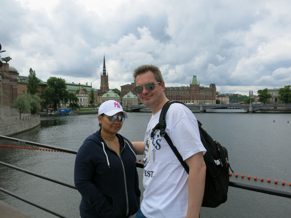 Riksbronin sillalla. Riddarholmenin kirkko taustalla.