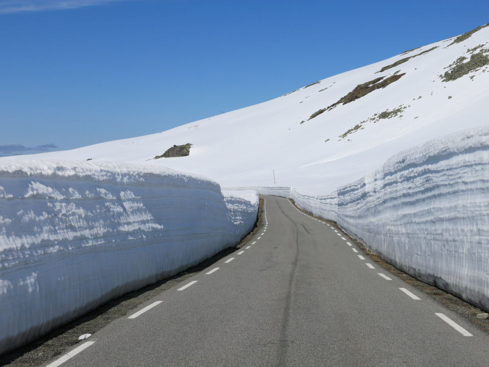 Fylkesvei 243. Kuuluisa "Lumitie" Lærdalin ja Aurlandin välillä. Kilometritolkulla lumirännissä ajoa. LÆRDAL, NORJA