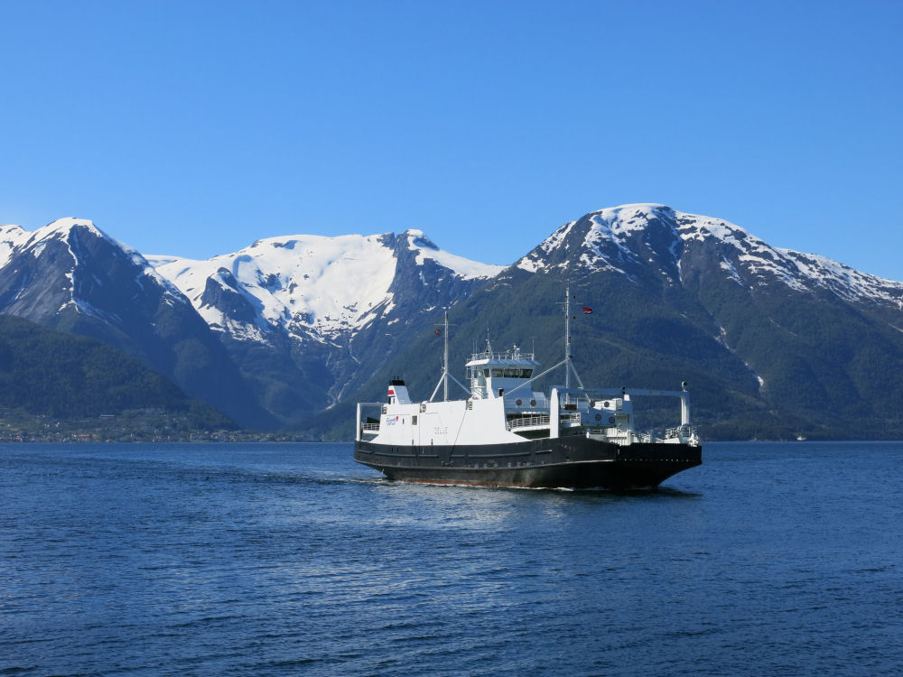 Vangsnes-Dragsvik-lautta paikoin yli kilometrin syvyisellä Sognevuonolla.