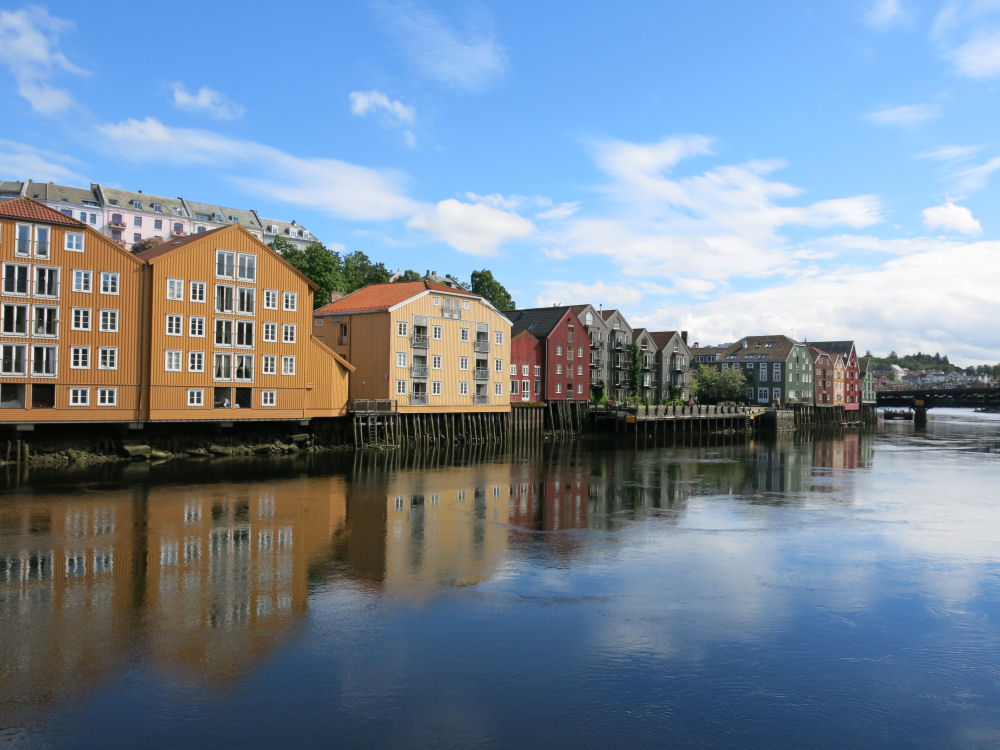 Vanhankaupungin puutalot Nidelva-joen rannalla.