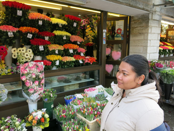 May silmäilee halvahkoja kukkia.