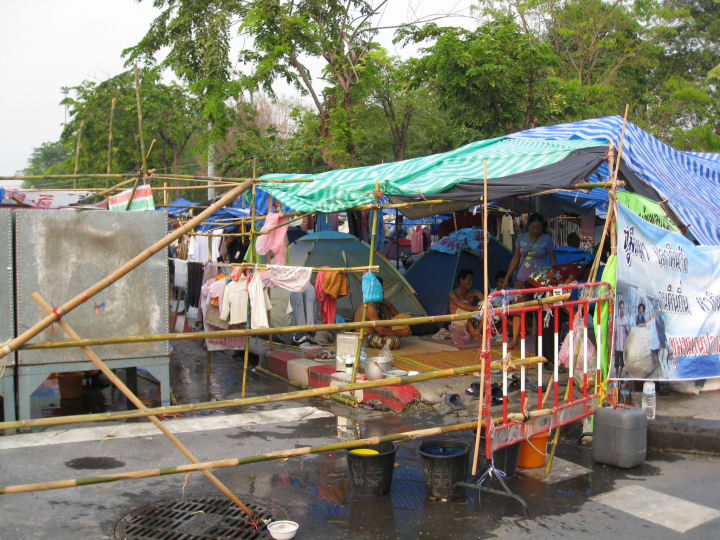 Ns. "Punapaidat" alkoivat jälleen maaliskuussa kerääntymään Bangkokiin osoittamaan mieltään. Perusleiri Dusit Palacen vieressä. BANGKOK