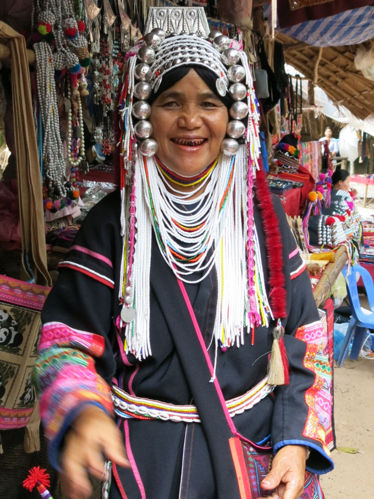 Akha-heimon nainen Thaimaan hallituksen rakennuttamassa kylässä lähellä Mae Rimiä.
