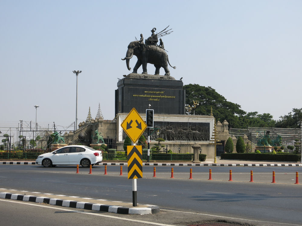 Kuningas Rama I:n patsas liikenneympyrässä.