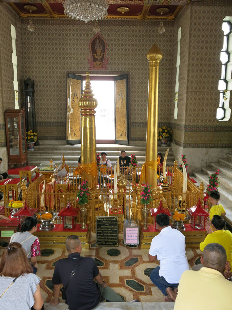 City Pillar Shrine. Kuningas Rama I pystytti pidemmän pylvään vuonna 1782, kun Bangkokista tehtiin maan uusi pääkaupunki. Lyhyempi pylväs on kuningas Rama IV:n pystyttämä vuonna 1852. BANGKOK