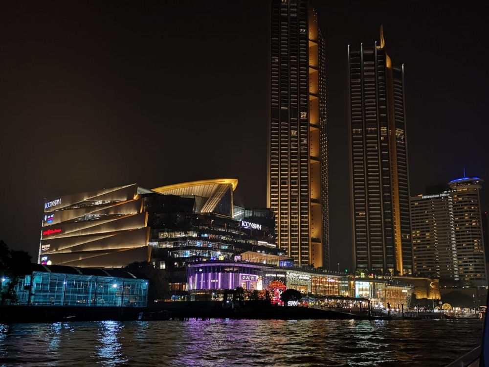 Yksi Aasian suurimmista kauppakeskuksista, ICONSIAM, avattiin vuoden 2018 lopulla. Vieressä Bangkokin korkein rakennus, 318 metrinen Magnolias Waterfront Residences. BANGKOK