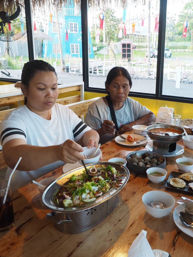 May nostelee merenelävää lautaselle, äitinsä seuraa tilannetta.