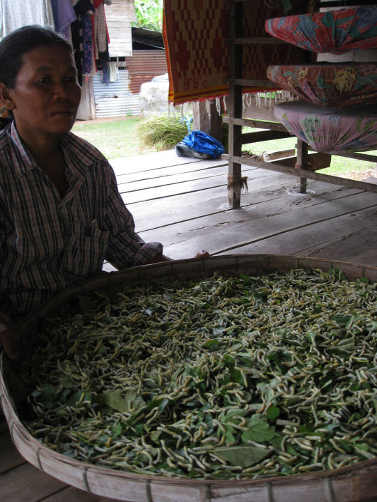 "Anoppi" ja silkkiperhosen toukkia. Näitä oli monta koria!