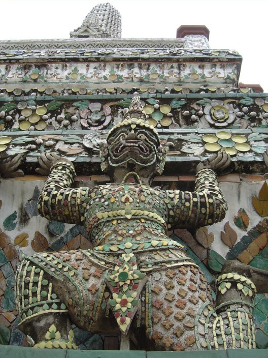 Myƶs Wat Arun-temppelin kannatteluun tarvitaan Hanuman-vartijoita.