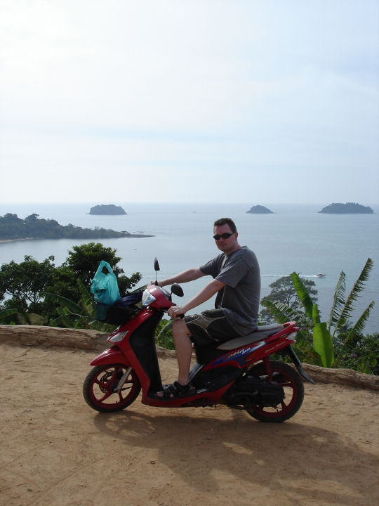 Skoottereilla lähdettiin kiertään saarta. Tässä Kai Bae'ssa.
